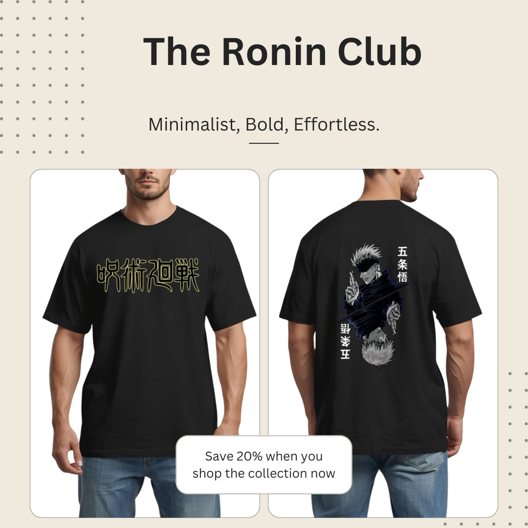 Elite Dual Sided Tee-Jujutsu kaisen in Japanese Kanji front logo paired with iconic Gojo's Sixth Eye back graphics.
